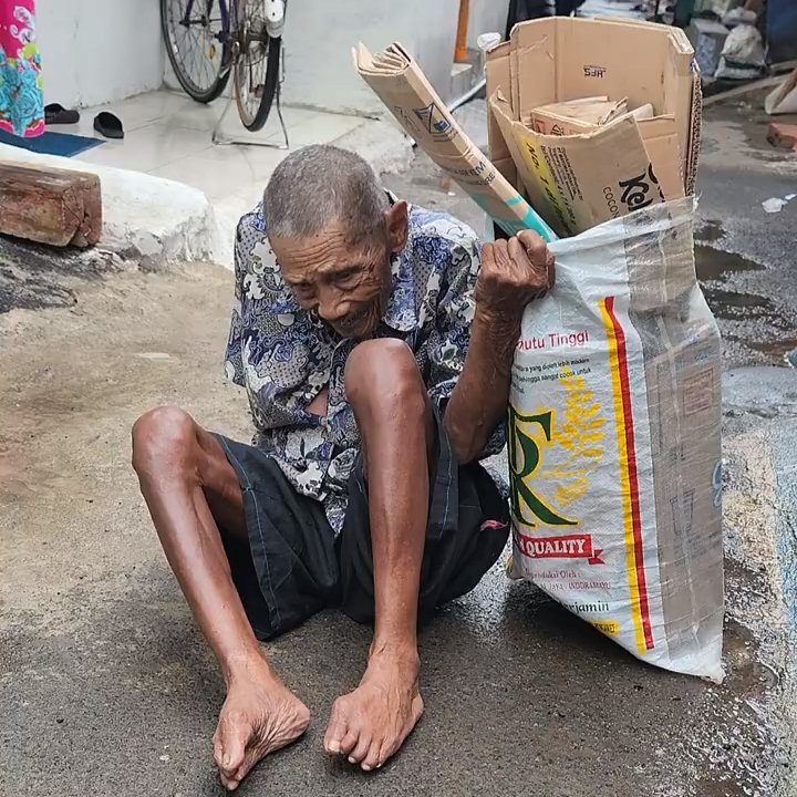 Abah Karjo (80 thn) hidup seorang diri tanpa keluarga dan tanpa tempat tinggal. Untuk bertahan hidup, Abah memulung kardus, botol plastik, dan barang bekas lainnya dari tumpukan sampah. Namun, penghasilannya sangat minim, hanya sekitar Rp 20.000 hingga Rp 45.000 per minggu. Itu pun sering kali tidak cukup untuk makan.