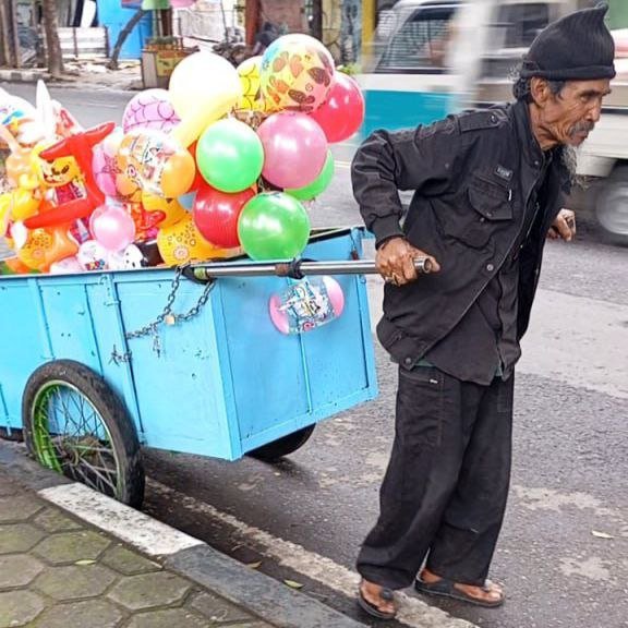 Setiap hari, Abah Mul (60 tahun) berjualan balon keliling, namun dikarenakan kondisi kesehatannya menurun, Abah sudah tidak bisa lagi berkeliling jauh. Banyak balon dagangannya yang sudah lusuh, karena sepinya pembeli. Pernah, di suatu sore, Abah Mul terlihat lemas, linglung, bahkan kelaparan. Dagangannya tak laku, hingga ia tak punya uang untuk sekedar membeli nasi.