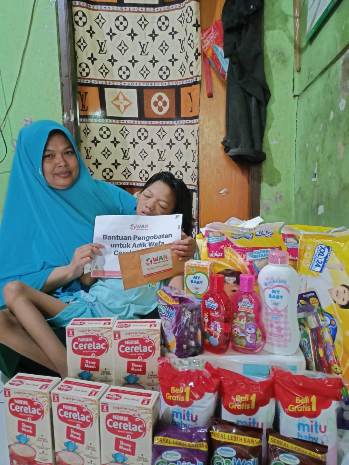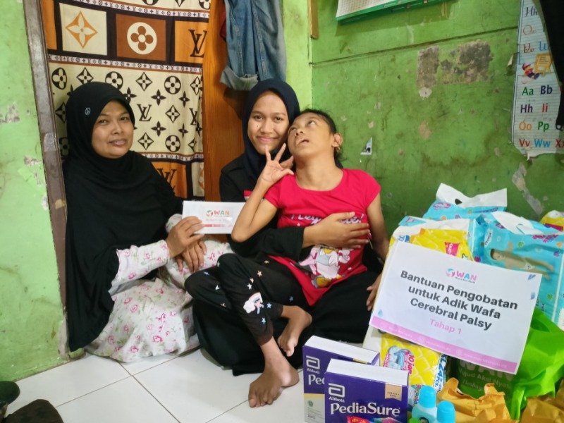 Wafa mengidap cerebral palsy sejak lahir, penyakitnya tidak bisa tumbuh seperti anak pada umumnya. Pengobatan yang tidak rutin dan asupan nutrisi yang tidak seimbang dapat mengancam kelumpuhan pada Wafa.