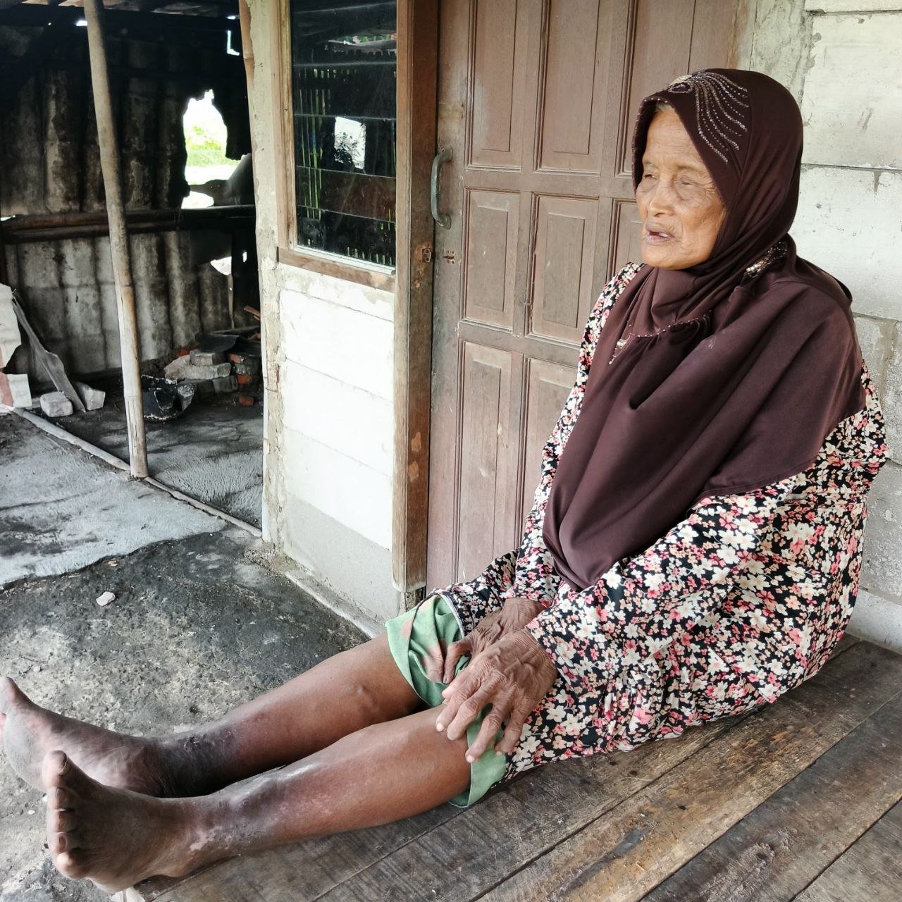 Di usia 81 tahun, Mak Omih hidup sendirian. Sebelumnya, saat kakinya masih kuat ia berdagang keliling sampai desa sebrang. Menjual sayuran tetangga seharga Rp 400 - Rp 500 perak, jajanan ringan, dan keripik opak hasil tangannya sendiri. Tapi kini, penglihatan yang memburuk dan kaki yang sakit sampai menghitam membuatnya tidak bisa lagi keluar rumah.