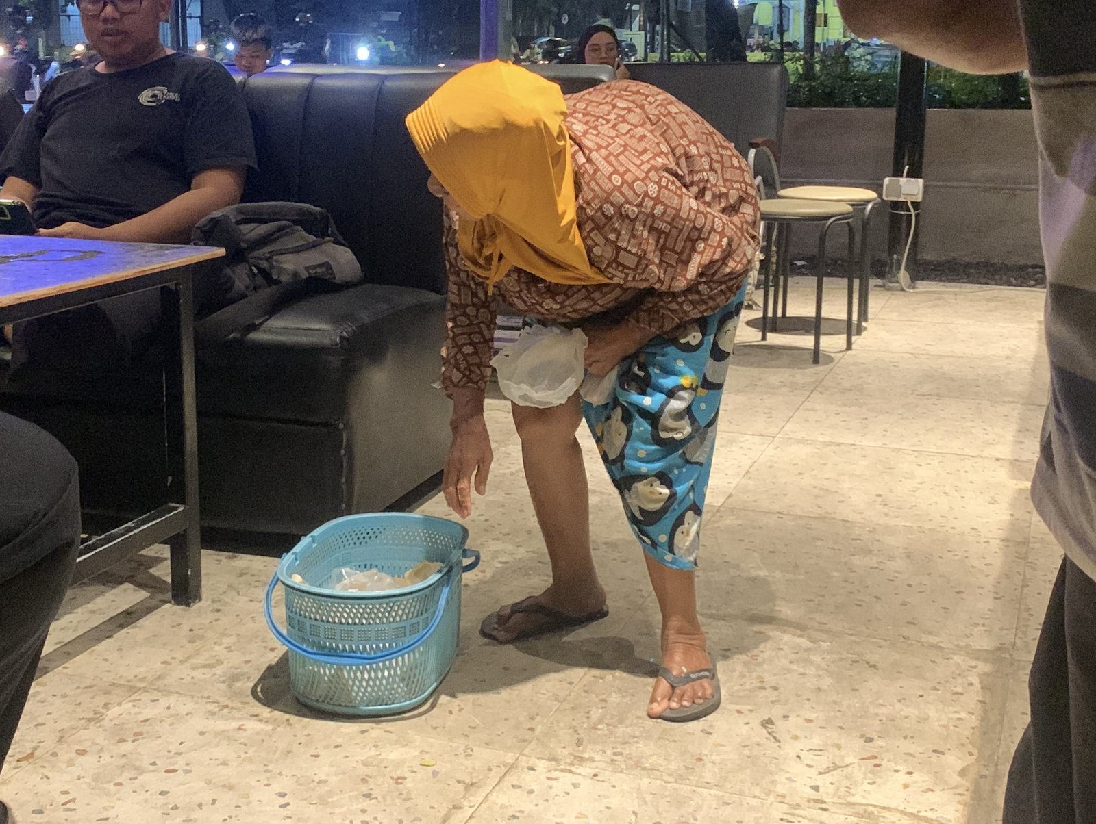 Dengan tubuh yang semakin lemah, Mbah berdiri berjam-jam menawarkan dagangan dengan suara pelan. Tak jarang dagangannya tak laku sama sekali. Keuntungan yang didapat pun sangat kecil, sekitar Rp500–Rp1.000 per potong. Bahkan sering kali tidak cukup untuk membayar ongkos becak Rp30.000, sehingga Mbah harus berjalan pulang meski menahan sakit di punggungnya.
