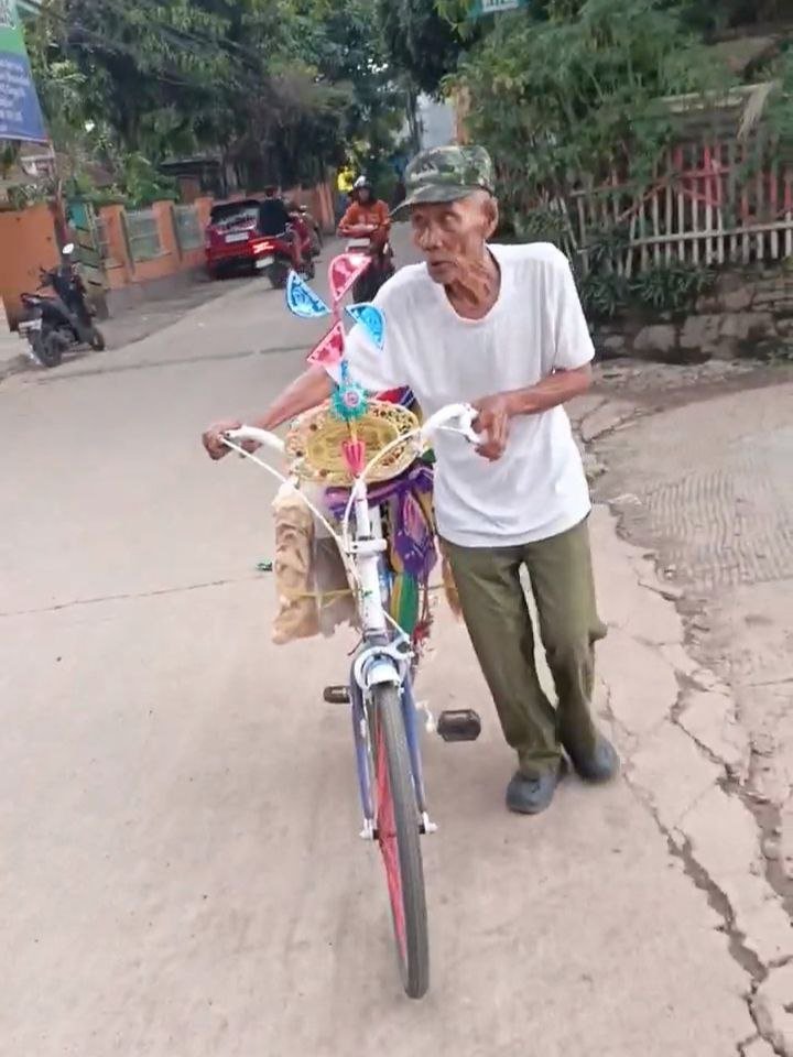 Di usianya yang sudah 82 tahun, Abah Patah seharusnya bisa beristirahat. Namun kenyataannya, ia harus menuntun sepeda tua berkilo-kilo meter setiap hari, menjadikannya tongkat bantu jalan karena kakinya sudah tak kuat lagi menopang tubuh.