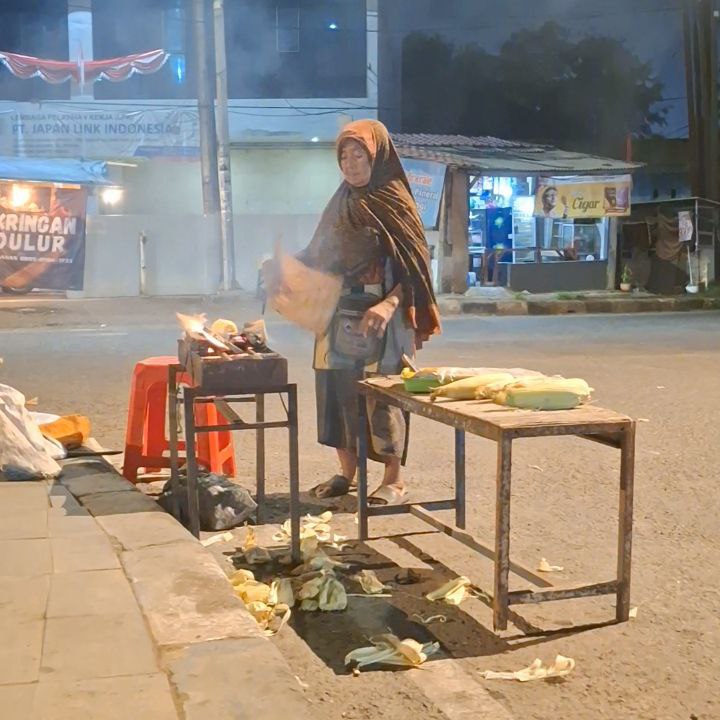 Di sebuah sudut jalanan, di tengah hiruk pikuk kendaraan dan dinginnya malam, ada seorang lansia tangguh bernama Emak Ikah (60 tahun). Di usia senjanya, Emak Ikah tak kenal lelah menjajakan jagung bakar, berjuang demi sesuap nasi dan masa depan cucu tercintanya.