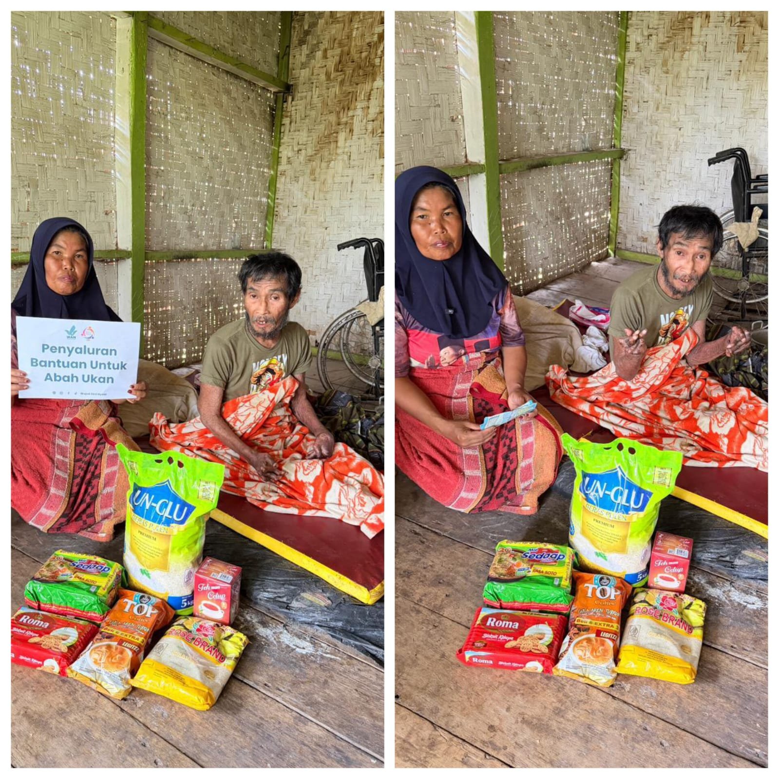 Pada 22 April 2026, tim relawan telah mendatangi kediaman Abah Ukan di Sindangkerta untuk mengantarkan amanah kasih dari para donatur. Di tengah perjuangan Abah melawan penyakit kulit langka dan diabetes yang menggerogoti fisiknya, kehadiran bantuan ini menjadi jawaban atas doa-doanya selama ini. Bantuan yang diserahkan berupa sembako dan uang tunai.