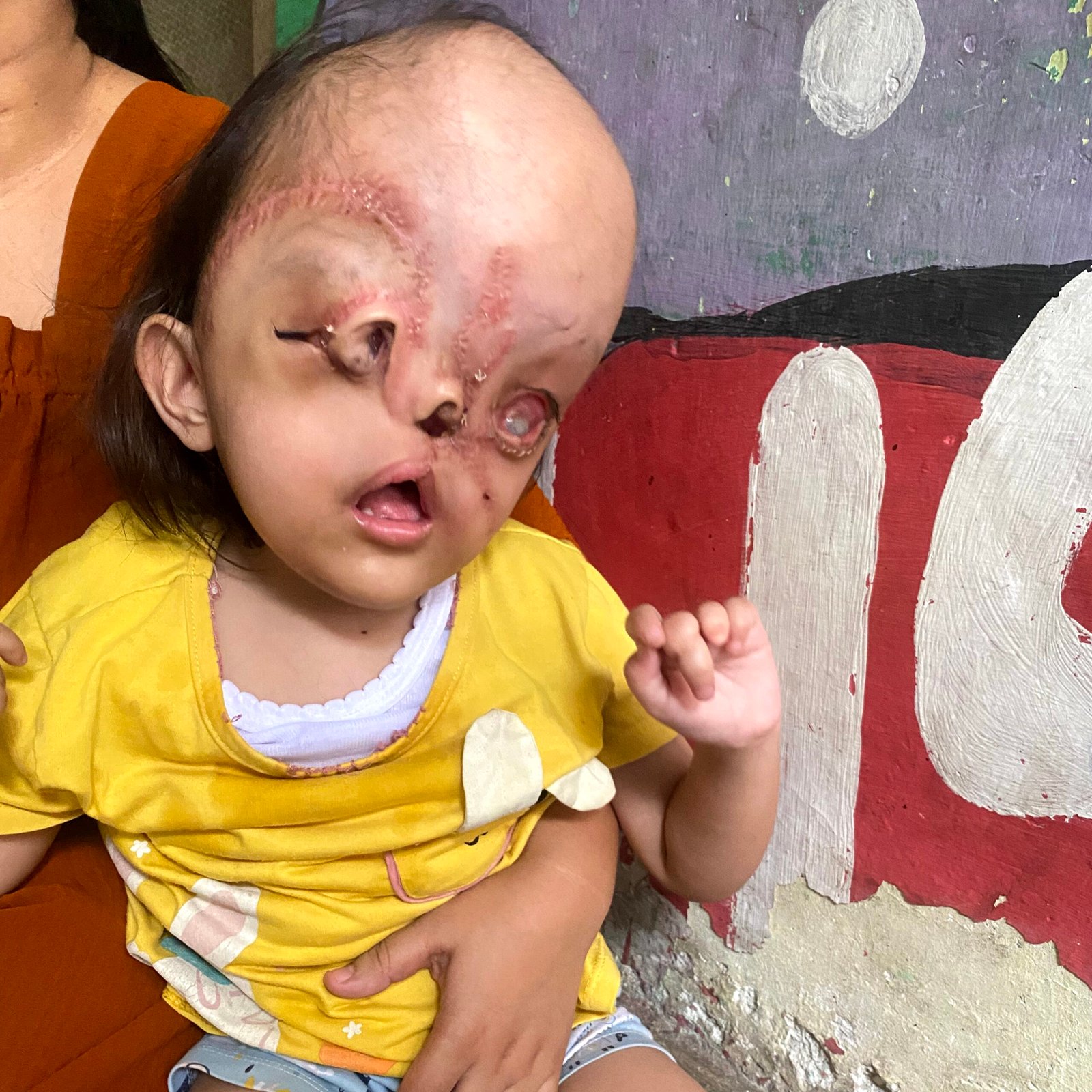 Zania (5 tahun) lahir dengan kondisi bibir sumbing, kelainan pada wajah, serta kepala yang tidak terbentuk sempurna. Sejak lahir, ia sudah berjuang dengan luka yang begitu besar untuk tubuh sekecil itu.