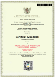Yayasan Wujud Aksi Nyata telah memiliki Izin Terdaftar sebagai Lembaga Kesejahteraan Sosial (LKS) dari Kementerian Sosial melalui surat nomor 1500.SA-LKS.C/2024
