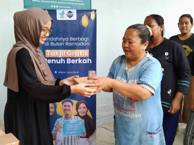 aksizakat.com, Bekasi – Semangat berbagi di bulan suci Ramadan kembali dihadirkan melalui kegiatan pembagian takjil kepada masyarakat. Pada Jumat Berkah, 6 Maret 2026, Wujud Aksi Nyata menyalurkan sebanyak 100 paket takjil bagi para pejuang nafkah dan warga yang membutuhkan di Kabupaten Bekasi, Jawa Barat.